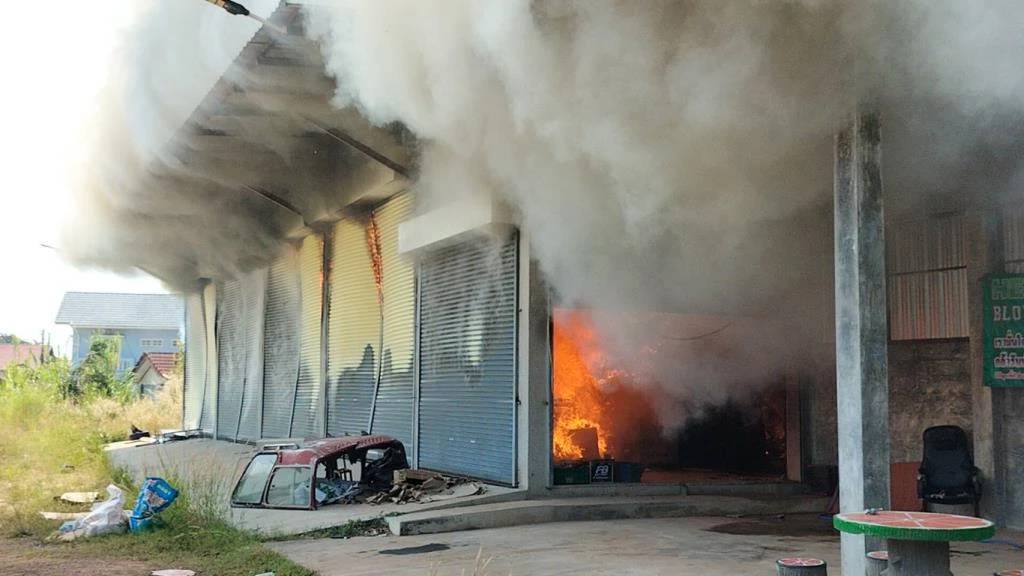 ไปถึงพบชาวบ้านกำลังช่วยกันใช้ถังดับเพลิงสารเคมีเข้าระงับเหตุ แต่เนื่องจากเพลิงลุกไหม้อย่างรวดเร็วจึงไม่สามารถดับไฟได้ เจ้าหน้าที่ดับเพลิงเทศบาลเมืองปราจีนบุรี จึงเร่งระดมฉีดน้ำสกัดเปลวเพลิงที่บริเวณประตูหน้าโกดัง ท่ามกลางความระมัดระวังเนื่องจากเกรงว่าคอมเพรสเซอร์แอร์มีน้ำมันอยู่จะเกิดการระเบิดขึ้น ใช้เวลาประมาณ 1 ชั่วโมงจึงสามารถควบคุมเพลิงไว้ได้