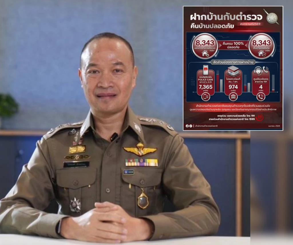 ผบ.ตร. ขอบคุณทุกโรงพัก “ฝากบ้านกับตำรวจ” สงกรานต์ 69 คืนบ้านปลอดภัยทั้ง 8,343 หลัง ชื่นชมป้องกันอาชญากรรม ดูแลอย่างดี เป็นที่พึ่งของประชาชน