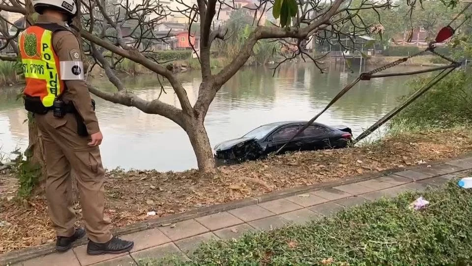 2 สาวขับเก๋งเปิดแอปนำทางกลับจากงานฉลองปีใหม่ แหกโค้งชนท้าย จยย.นักศึกษาชายชั้นปี 1 ร่างกระเด็นตกบ่อน้ำ ใกล้วัดบางบัวเสียชีวิต