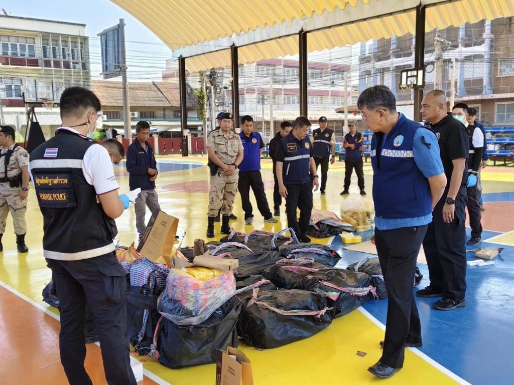 รวมของกลางยาเสพติดให้โทษประเภท 1 (เมทแอมเฟตามีนหรือยาบ้า) จำนวนรวมทั้งสิ้น 32 กระสอบ ประมาณ 8,000,000 เม็ด ผู้ต้องหา เพศชาย จำนวน 3 คน หลบหนี 2 คน
