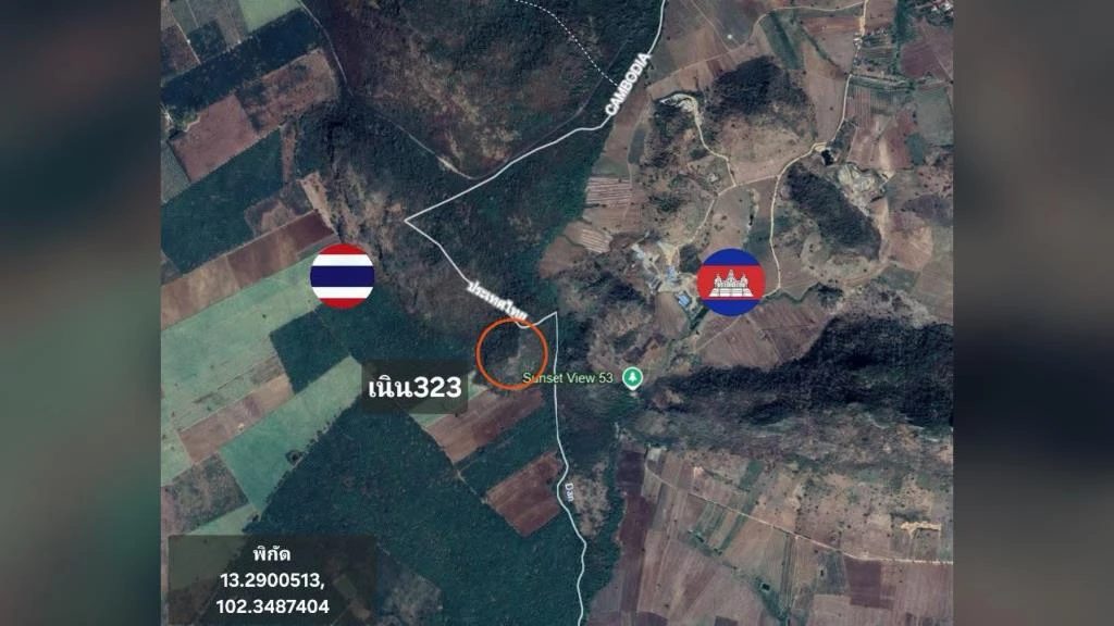 เมื่อวันที่ 10 ธ.ค. เพจ “Thai Burma railway ทางรถไฟสายมรณะ” ออกมาโพสต์ข้อความกล่าวถึง “เนิน 323” ซึ่งเป็นจุดยุทธศาสตร์สำคัญที่ทหารพรานจากกองทัพภาคที่ 1 ได้ขึ้นไปปักธงชาติไว้ เนินนี้ตั้งอยู่บริเวณรอยต่อของจังหวัดสระแก้ว (คลองหาด) และจันทบุรี (สอยดาว) โดยมีจังหวัดพระตะบองของกัมพูชาอยู่ฝั่งตรงข้าม