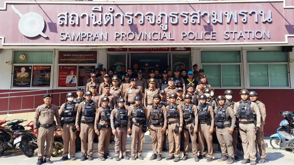 โดยมี พล.ต.ต.พิทักษ์ อุปพงษ์ ผู้บังคับการตำรวจภูธรจังหวัดนครปฐม พ.ต.อ.เทิดเกียรติ รักพานิชมณี รองผู้บังคับการตำรวจภูธรจังหวัดนครปฐม พ.ต.อ.ทรงวุฒิ เจริญวิชยเดช ผู้กำกับการสถานีตำรวจภูธรสามพราน พร้อมรองผู้กำกับ และข้าราชการตำรวจในสังกัด ร่วมให้การต้อนรับ และเข้าร่วมการตรวจแถวข้าราชการตำรวจ เพื่อเสริมสร้างขวัญและกำลังใจในการปฏิบัติหน้าที่