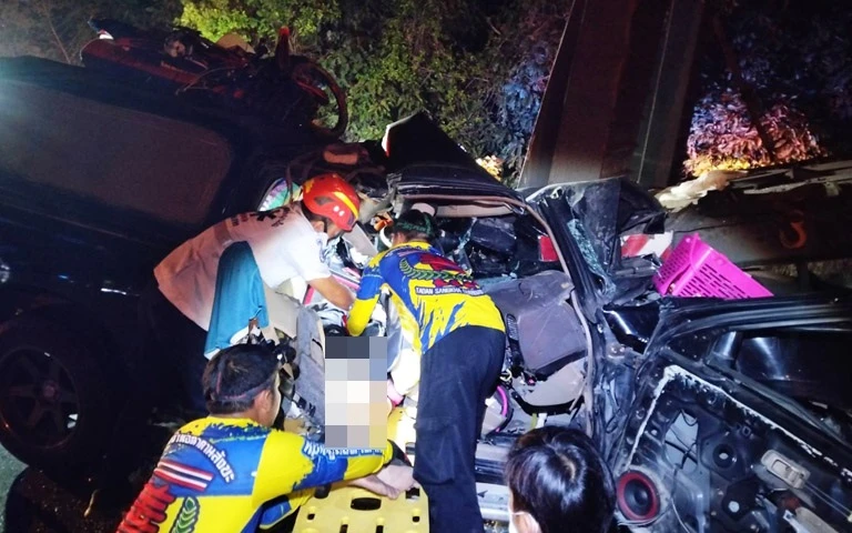 อุบัติเหตุหมู่สลด ชาวสปป.ลาวเหมารถไปส่งช่องเม็ก อุบลฯ ชนท้ายรถเทรลเลอร์ทหารพังยับ ชาวลาวเสียชีวิต 2 ราย รวมเด็กชาย 5 ขวบ สาหัสอีก 2 ราย เกิดเหตุ บนถนน 24 อ.สังขะ สุรินทร์