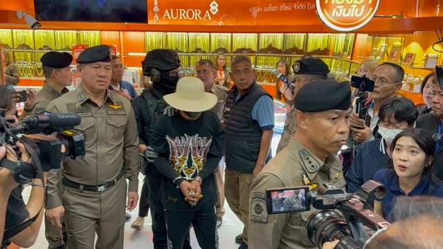 โดยก่อเหตุบุกเดี่ยวใช้อาวุธปืนข่มขู่ ราดน้ำมัน ชิงทองคำน้ำหนักประมาณ 198 บาท พร้อมเงินสด 1.7 แสนบาท ที่ร้านทองออโรร่า ภายในห้างย่านพระโขนง เขตคลองเตย กทม.เมื่อวันที่ 30 ม.ค. ที่ผ่านมา หลังจับกุมได้เมื่อวานนี้ 19 ก.พ. ได้ที่ซุ้มชายชุดดำ เขื่อนแม่สรวย อ.สรวย จ.เชียงราย