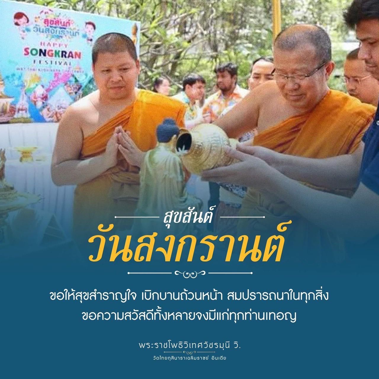 ในวาระดิถีขึ้นปีใหม่ไทย ขอนำพรจากสังเวชนียสถานทั้ง คือขอให้ชีวิต เริ่มต้นอย่างงดงามและเจริญก้าวหน้า ดั่งพุทธสถานลุมพินีวันขอให้ สว่างไสวด้วยสติปัญญา ดั่งพุทธสถานพุทธคยาขอให้ พบแสงสว่างและทางออกของทุกปัญหาดั่งพุทธสถานสารนาถและขอส่งกระแสแห่งความ “สงบและร่มเย็น” จากพุทธสถานกุสินาราให้จิตใจของท่านชุ่มฉ่ำ เบิกบาน และมีพลังใจที่เต็มเปี่ยมขอให้สงกรานต์ปีนี้เป็นปีแห่งความสุขกาย สบายใจ ร่มเย็นตลอดไปเทอญ