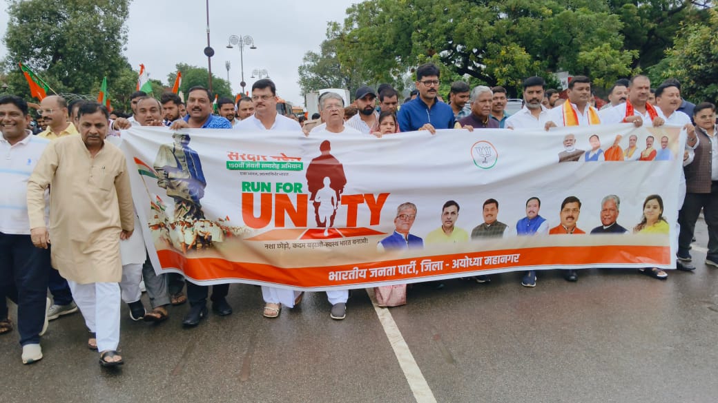 अयोध्या। भारत को अखंडता के सूत्र में पिरोने वाले लौहपुरुष, भारत रत्न सरदार बल्लभभाई पटेल की जयंती पर गुरुवार को “रन फॉर यूनिटी” का भव्य आयोजन किया गया। रिमझिम बारिश के बीच सिविल लाइन स्थित गांधी पार्क से प्रारंभ हुई यह एकता दौड़ “एक भारत श्रेष्ठ भारत” के उद्घोष के साथ शहीद स्मृति स्थल पहुंचकर संपन्न हुई। रिम-झिम बारिश के बावजूद प्रतिभागियों में जोश और देशभक्ति का जज़्बा देखने योग्य था। “राष्ट्र एक, भारत महान” और “भारत माता की जय ” के नारों से वातावरण गुंजायमान रहा।