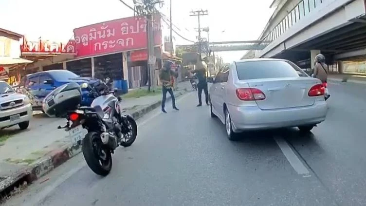 พบเจ้าของรถใส่เสื้อเชิ้ตแขนยาวสีดำ กางเกงขายาวสีดำ กำลังทะเลาะวิวาทกับผู้ชายสวมหมวกกันน็อก ใส่เสื้อฮู้ดสีเขียว กางเกงสีดำ เจ้าของรถจักรยานยนต์ยี่ห้อฮอนด้า รุ่นซีบี สีเทา-แดง ทะเบียน 8กธ 916 กรุงเทพฯ จอดอยู่ริมทางเท้า หลังจากยืนโต้เถียงกัน ชายที่ขับรถยนต์ได้ตะโกนว่า “จะยิงละนะ” ก่อนชักปืนยิงใส่คู่กรณีที่ขี่รถจักรยานยนต์ จนหญิงสาวที่มาด้วยกันร้องด้วยความตกใจแล้วเดินเข้ามาห้าม ผู้ก่อเหตุถือปืนเดินวนไปมาก่อนขับรถยนต์หนีไป
