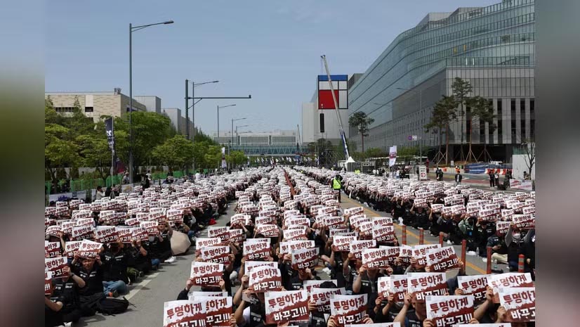 Tens of thousands of Samsung workers rally, demand bigger AI profit share